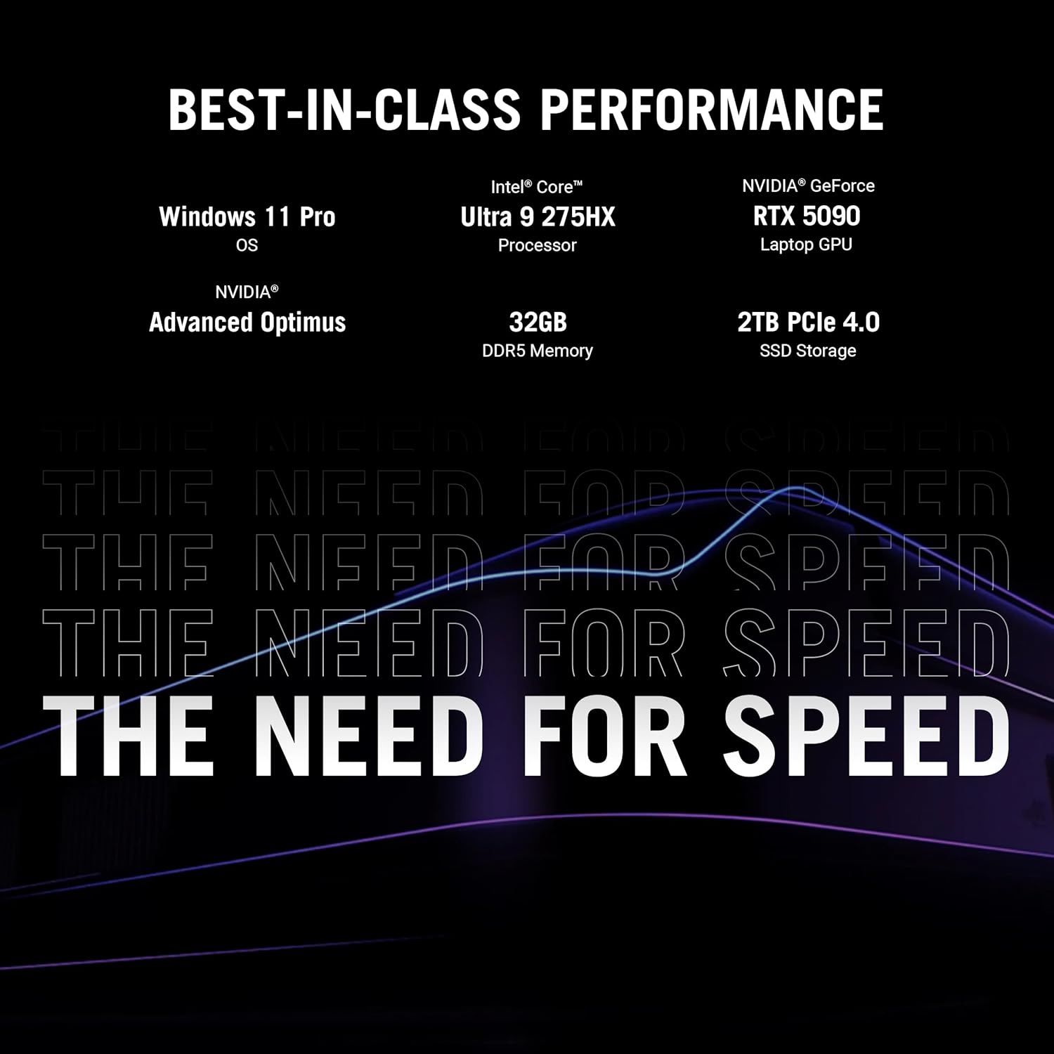 What GPU does the ASUS ROG STRIX G635LX-S5156 SCAR EDITION (Core ULTRA 9 275HX, 1TB NVME/32GB DDR5, 16" 2.5K WQXGA (2560 x 1600) 240HZ, RTX 5090 24GB, DOS) have and what games can it run?