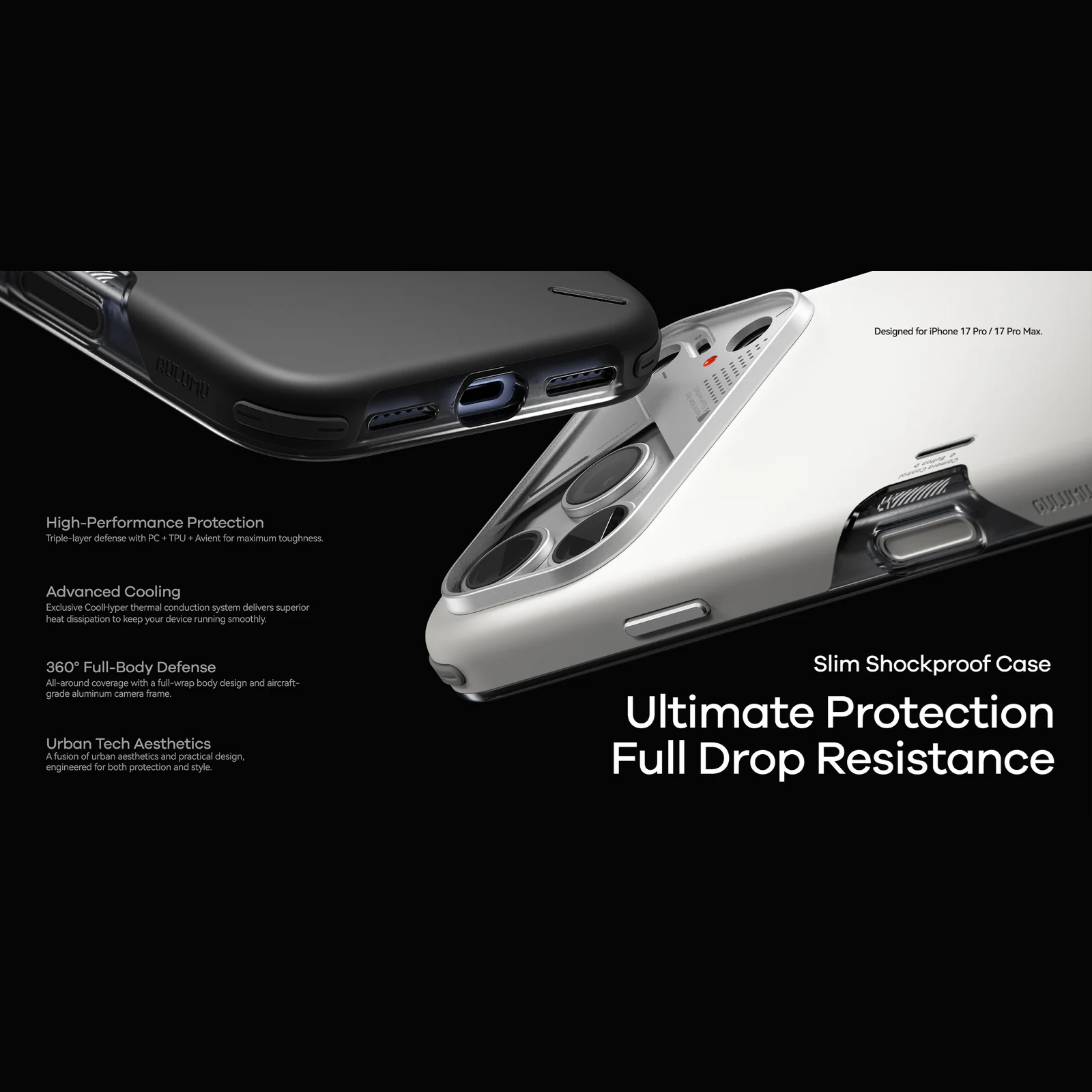 AULUMU Slim Shockproof Case for Apple iPhone 17 Pro Max – Black (Cooling Tech, Color Changing Sensor, Shock Absorption)