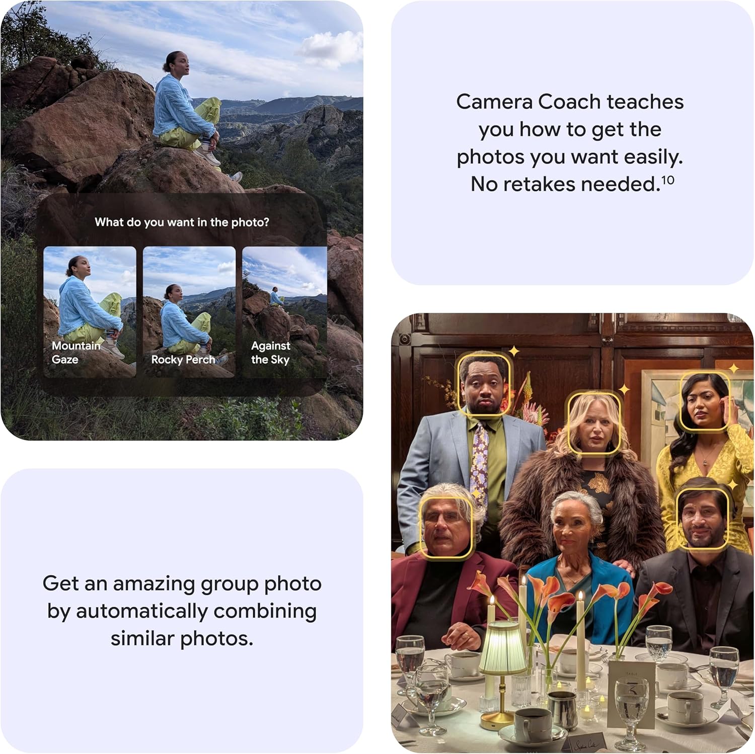 - AI-Powered Photography: New for the A-series, Auto Best Take ensures everyone looks perfect in group shots, while Camera Coach helps you frame like a pro.