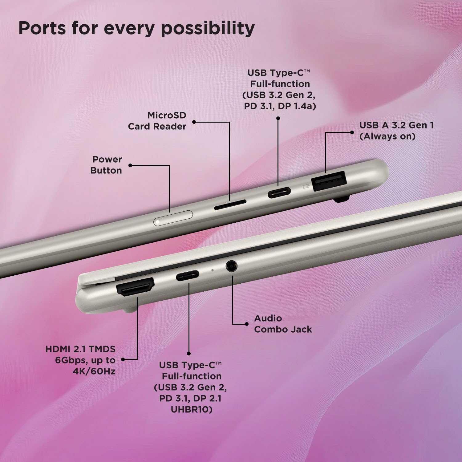 With AMD Ryzen AI 7 350, 16GB DDR5 ON BOARD/1TB NVME, and Discrete graphics, the LENOVO YOGA 7 14AKP10 83JR0001US handles demanding apps and smooth visuals on its 14″ WUXGA OLED (1920×1200.