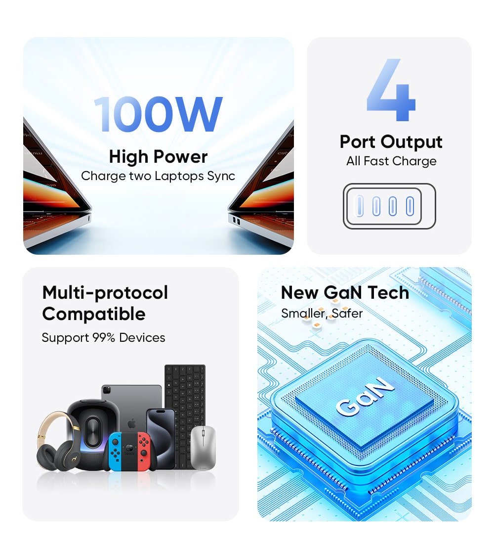 - 3 USB-C & 1 USB-A with 100W Maximum Output