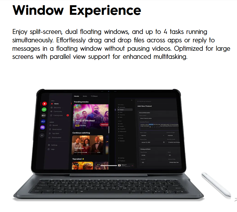 - Display: Large 12.0″ 2K IPS LCD with 2000 × 1200 resolution, 90 Hz refresh rate and 86% screen-to-body ratio for immersive viewing.