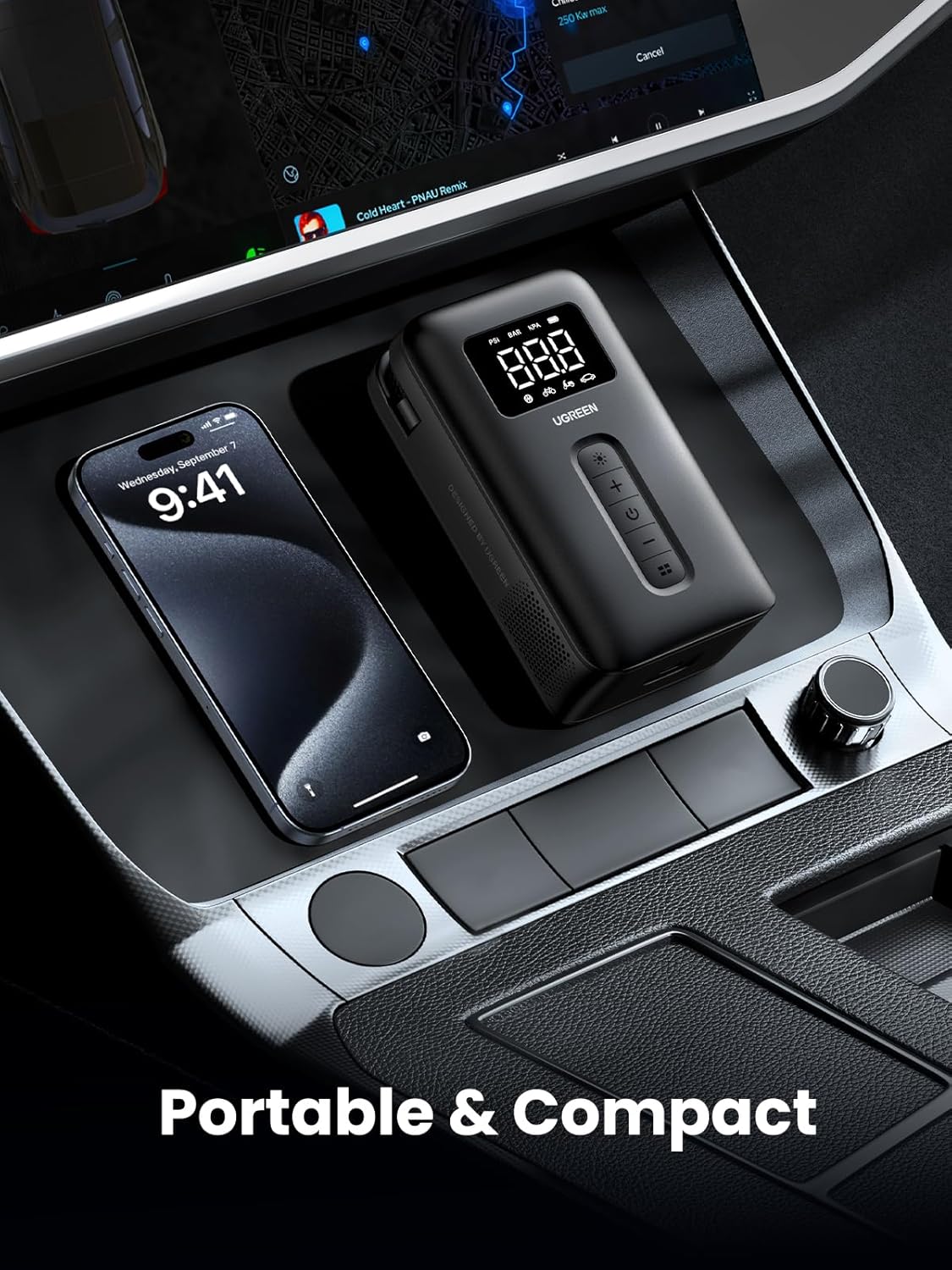 UGREEN Portable Cordless Electric Air Pump and Tyre Inflator (150PSI Air Pump with Battery LED Light, Cordless)