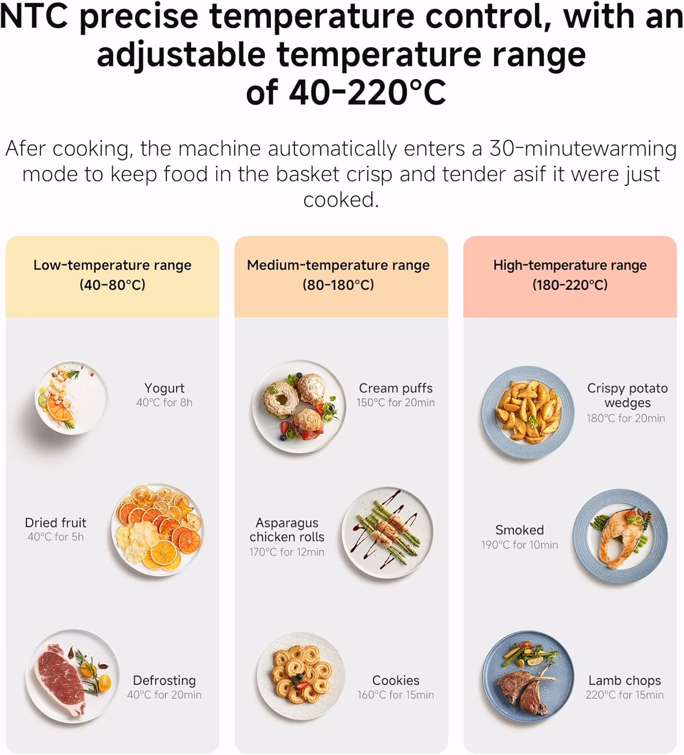 - Capacity: 6.5L with dedicated grill rack included.